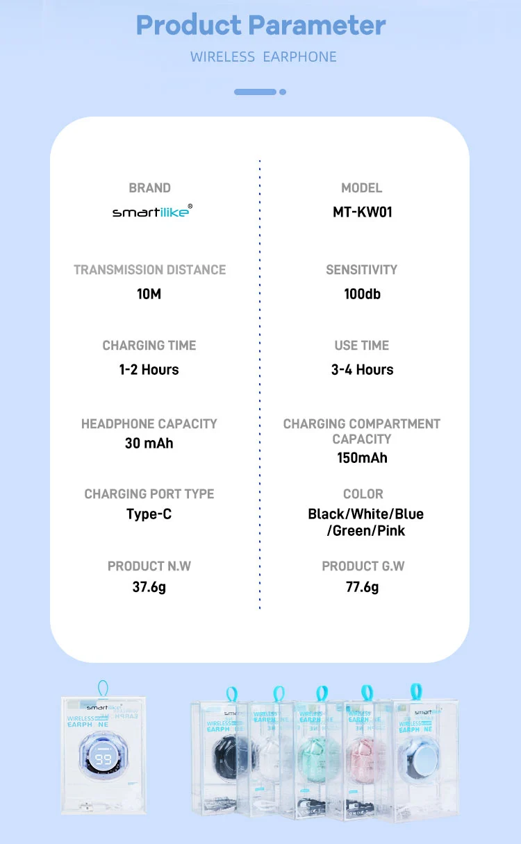 MT-KW01 Wireless Earphone with Transparent Shell Design