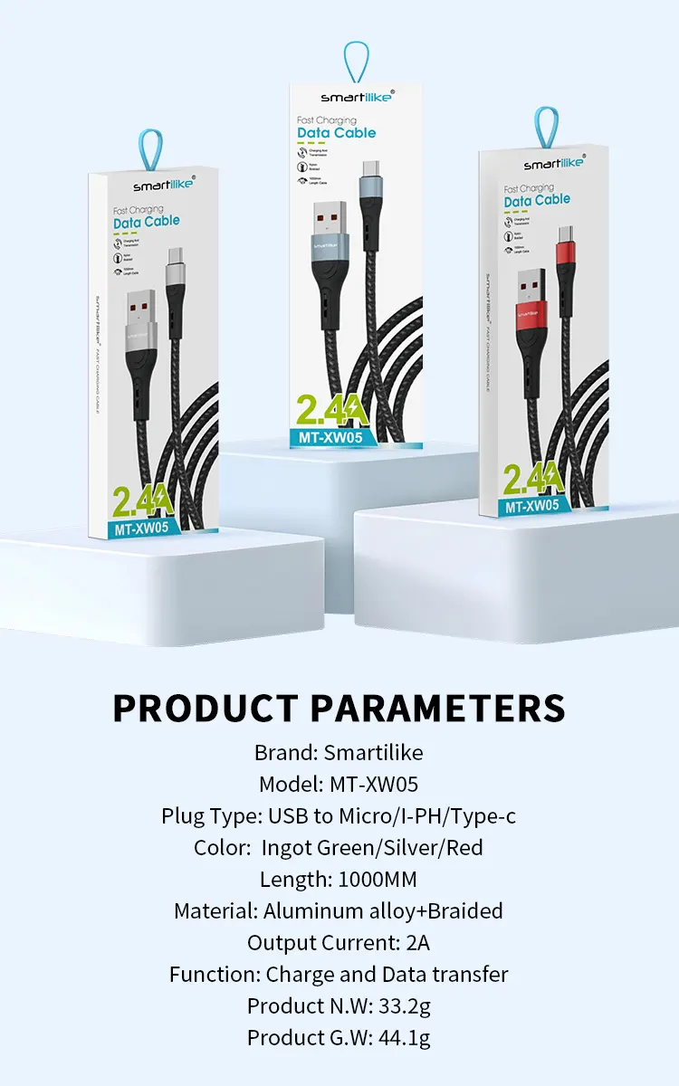 MT-XW05 Aluminum Alloy Connecter Braided Fast Charging Cable